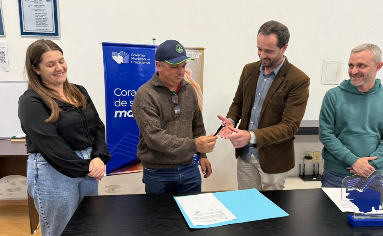 Prefeito de Cruzaltense, André Gazzoni assina convênio de R$ 300 mil para recuperação de estradas rurais. “Estradas do interior são fundamentais para o escoamento da produção agrícola e mobilidade das famílias”, disse ele