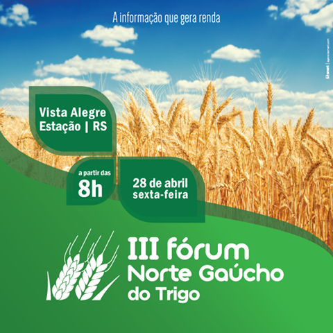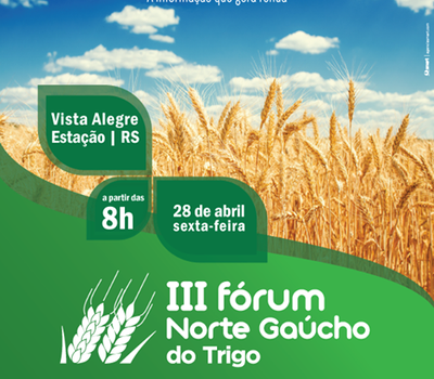 O município de Estação sediará o 3º Fórum Gaúcho do Trigo, que acontece dia 28 de abril, na localidade de Vista Alegre e deve reunir cerca de 500 pessoas, entre produtores, agrônomos, técnicos agrícolas, estudantes e interessados na cultura do trigo.
