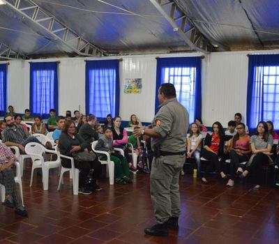 Ocorreu na última quarta-feira (28) no auditório da Escola Estadual Érico Veríssimo, duas palestras, uma às 9h e outra às 14h, ministradas pelo Sargento Santarem. O tema proposto foi a “Prevenção ao Uso de Drogas”.