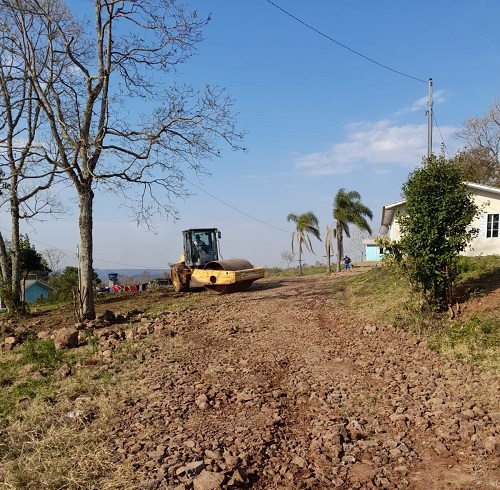 O secretário de Obras e Infraestrutura, Alencar Solducha, de Benjamin Constant do Sul, juntamente com sua equipe de trabalho, realizaram cascalhamento e compactação com rolo, em vias secundárias, na Comunidade de Votouro.