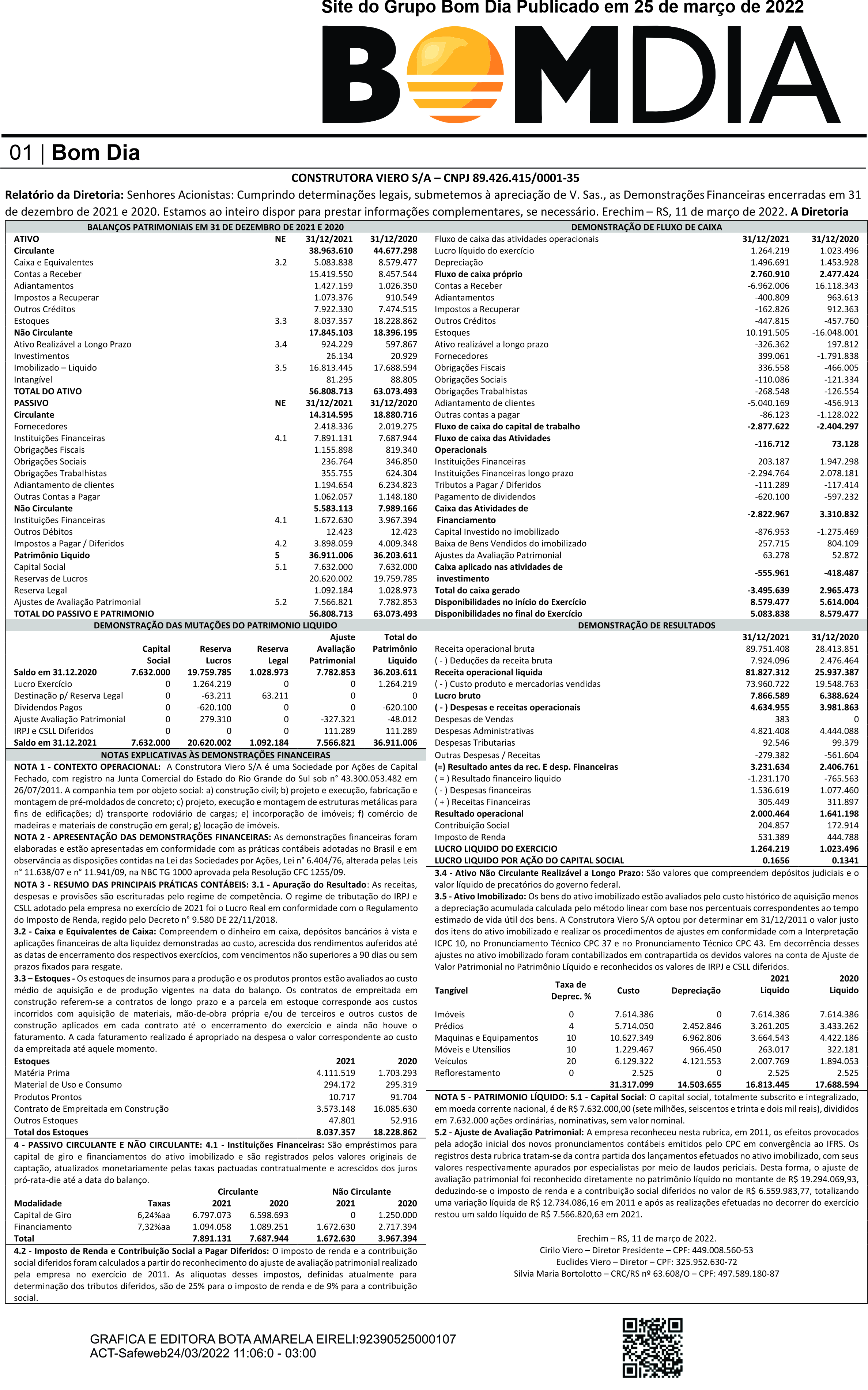 Balanço Construtora Viero S/A 20222