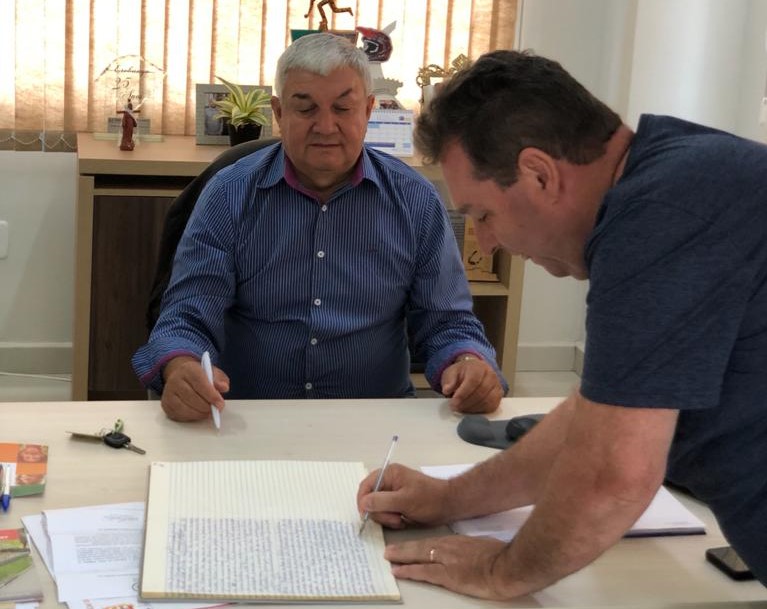 Na manhã deste sábado (25) foi realizado o ato de transmissão de cargo do prefeito Valmor José Tomelero ao presidente do Legislativo municipal, o vereador Alcindo Luiz Fernandes Leite (PP). A razão é a viagem do chefe do Executivo juntamente ao vice-prefeito, Flávio Kusz, à Brasília, momento em que irão participar da Marcha dos Prefeitos e, ainda, cumprir outras agendas.