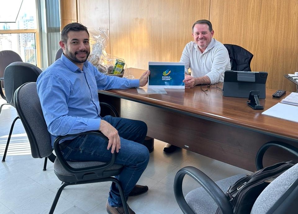 O Prefeito de Centenário, Genoir Marcos Florek, se reuniu com o secretário de Desenvolvimento Rural, Ronaldo Santini, para apresentar o Plano de Desenvolvimento do município: Desenvolve + Centenário.