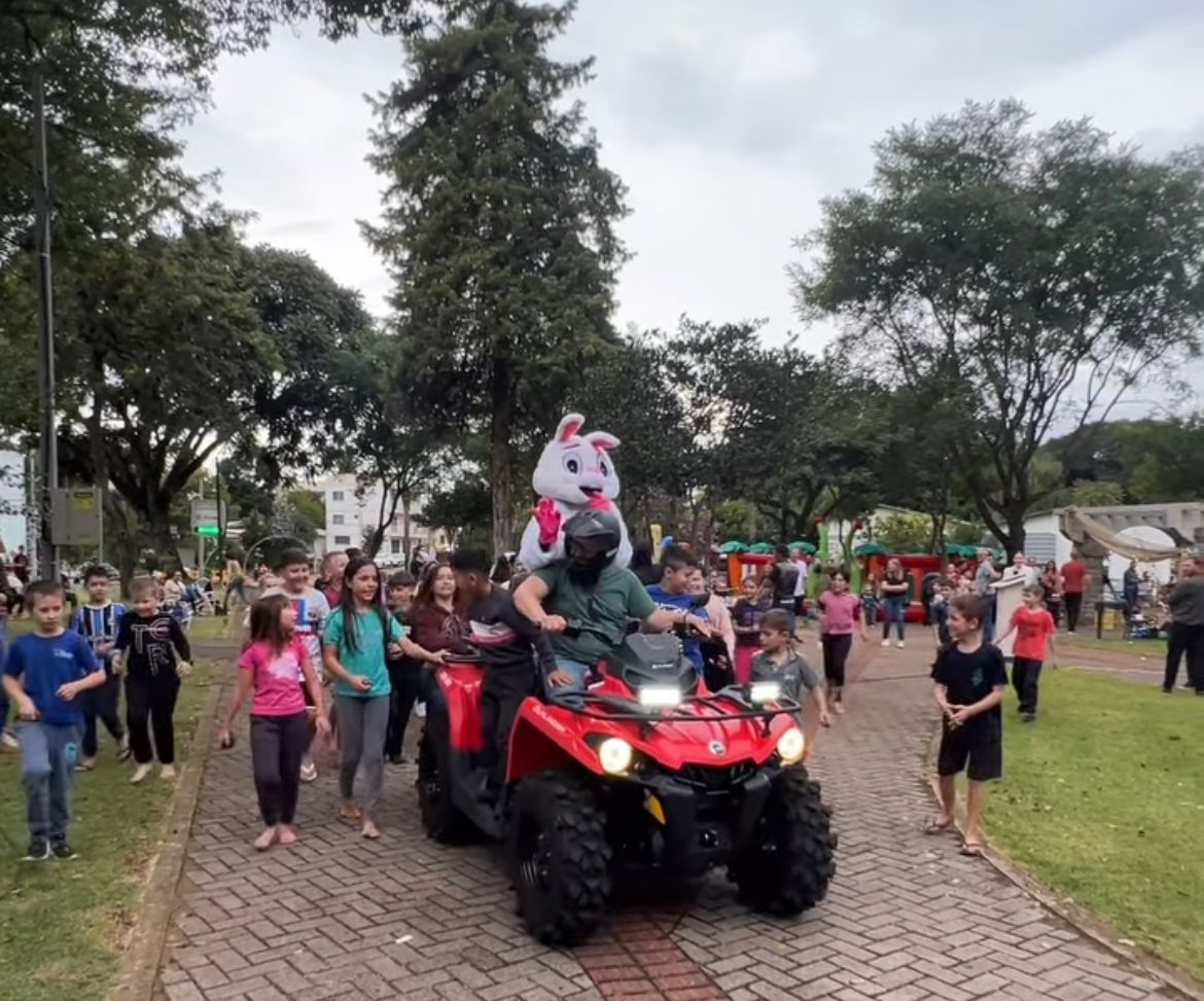A tarde foi marcada por muita alegria e diversão, com diversas atividades para o público. A programação contou com mateada, distribuição de doces, brinquedos infláveis, pintura de rosto, brincadeiras e muita interação com os personagens da Páscoa.