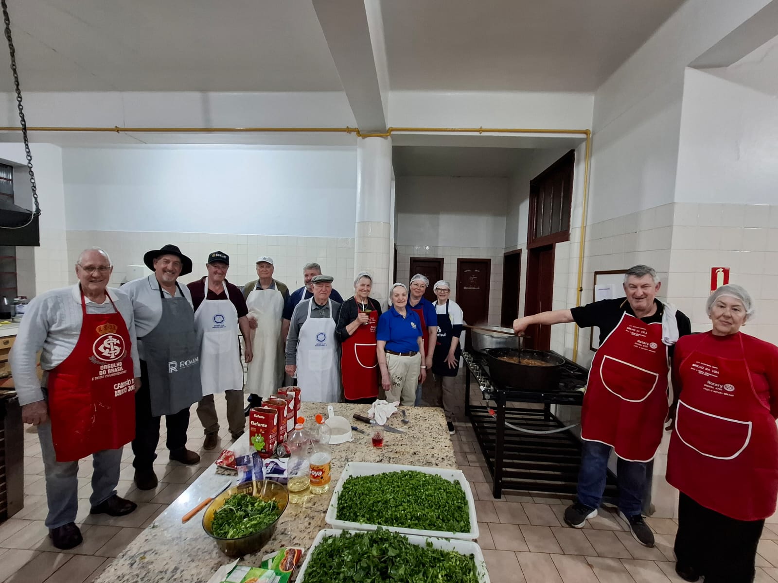O jantar da noite foi organizado pelo Rotary Club de Marcelino Ramos, com cardápio típico composto por arroz de costela, pão, cuca, saladas e sobremesas. A renda obtida será destinada à aquisição de equipamentos para o Banco Ortopédico do município.