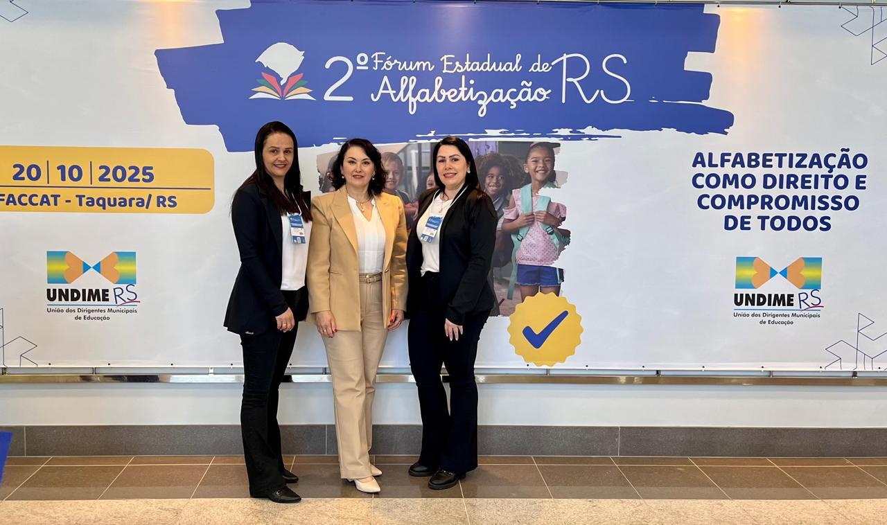 A Secretaria Municipal de Educação de Machadinho participou do 2º Fórum Estadual de Alfabetização do Rio Grande do Sul, promovido na segunda-feira, 20, nas Faculdades Integradas de Taquara (FACAAT). O município esteve representado pela secretária de Educação, Leoni Schwaab, e pelas coordenadoras pedagógicas, Mônica Pelicer e Zuleica Paixão.
