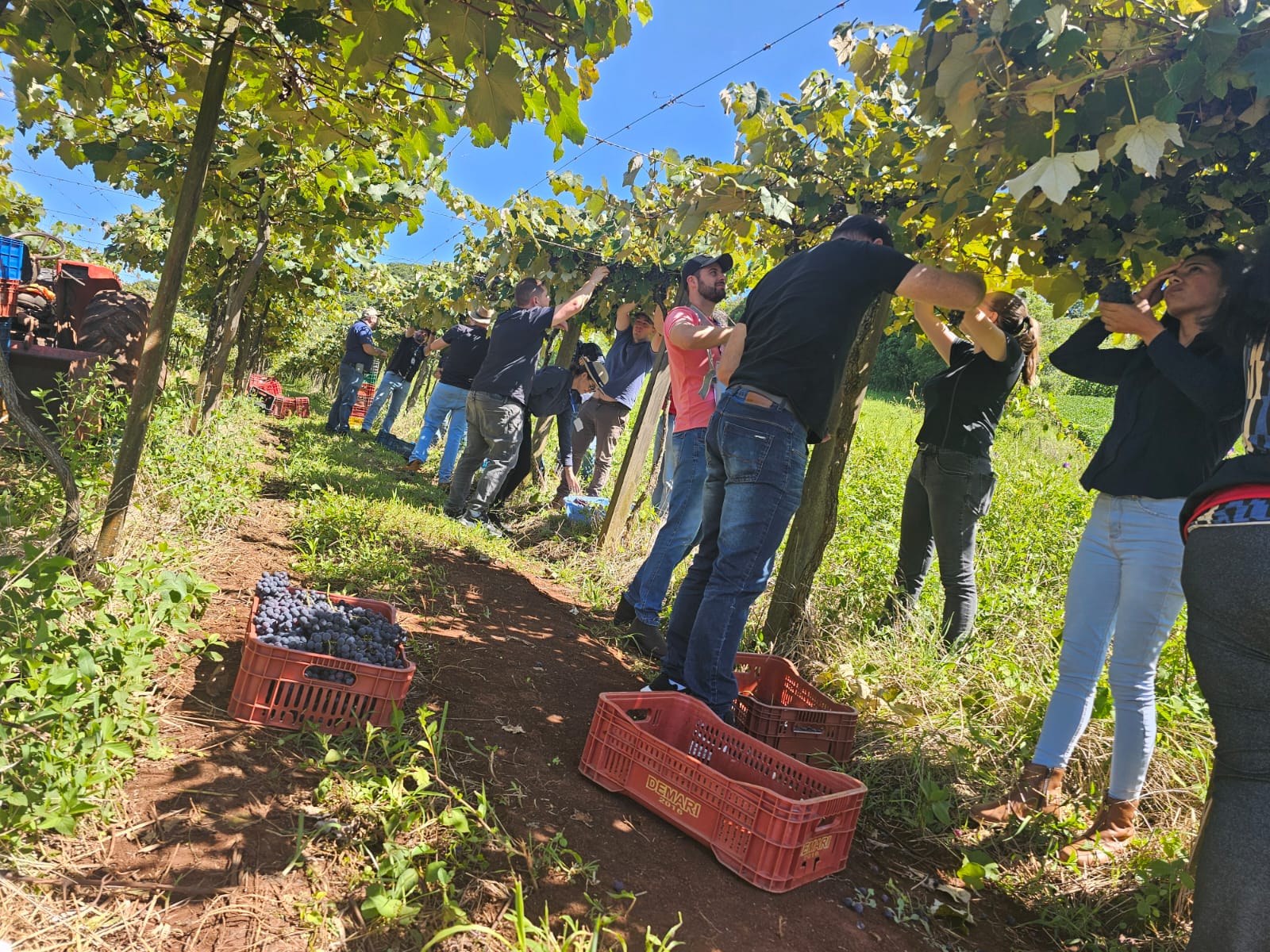 Durante a capacitação, foram abordados todos os fatores essenciais para a produção de vinhos de qualidade, desde a escolha da uva a ser colhida, com avaliação do grau Brix, até as etapas de limpeza, retirada de grãos verdes, controle de temperatura na chegada à cantina, desengace, moagem e aplicação de leveduras e metabissulfito de potássio.