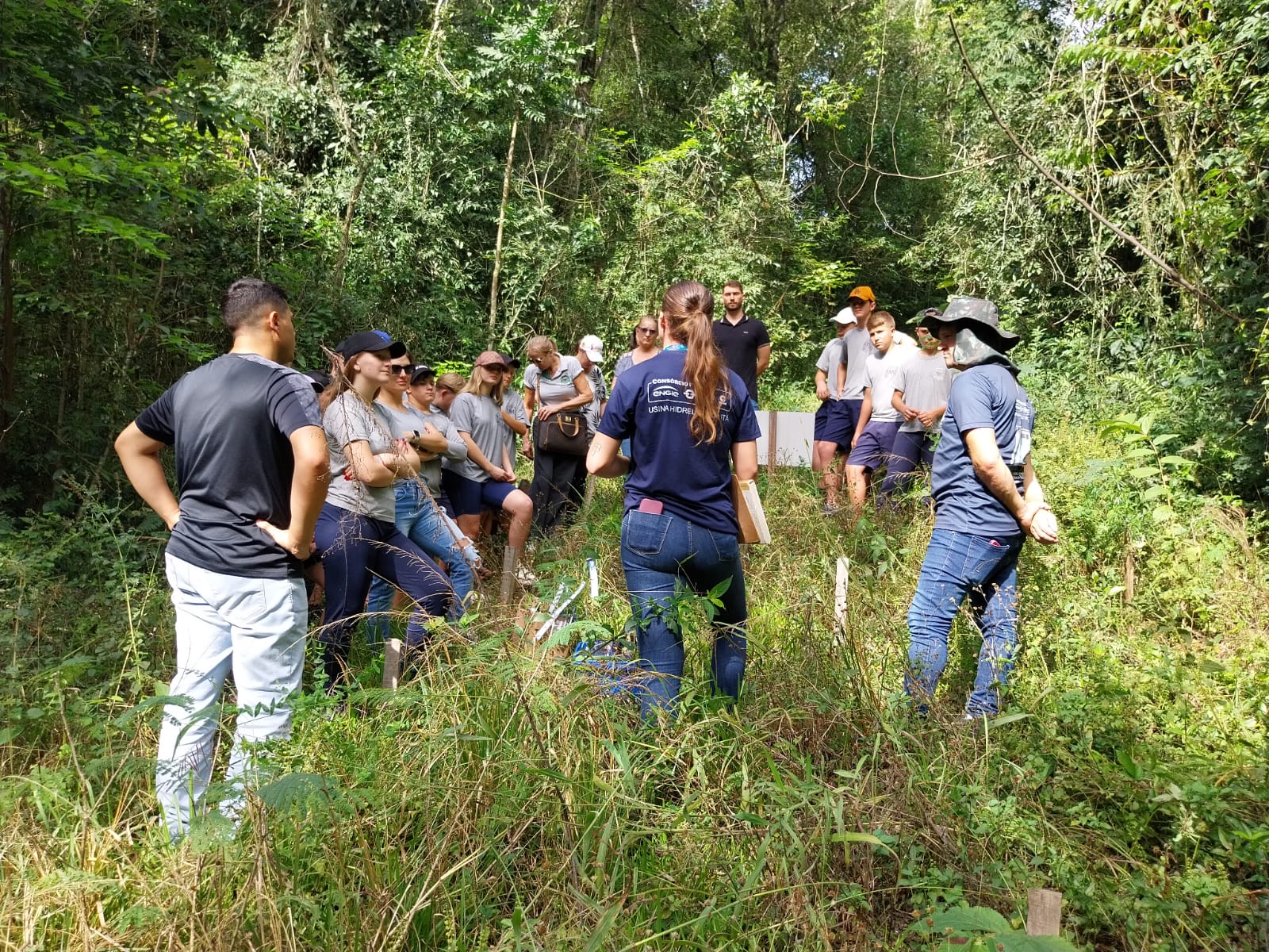 A atividade compreendeu a identificação das espécies a partir dos nomes populares e a classificação das mudas em pioneiras, secundárias e clímax (rápido crescimento e crescimento mais lento), acompanhamento do crescimento com a medição da altura, identificação de presença da espécie exótica invasora (Uva do Japão) e combate de formigas.